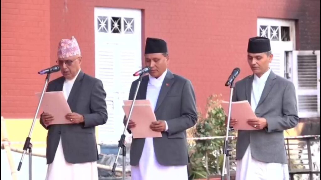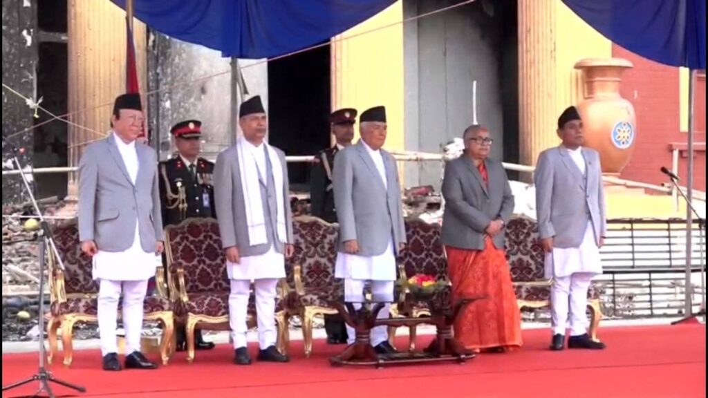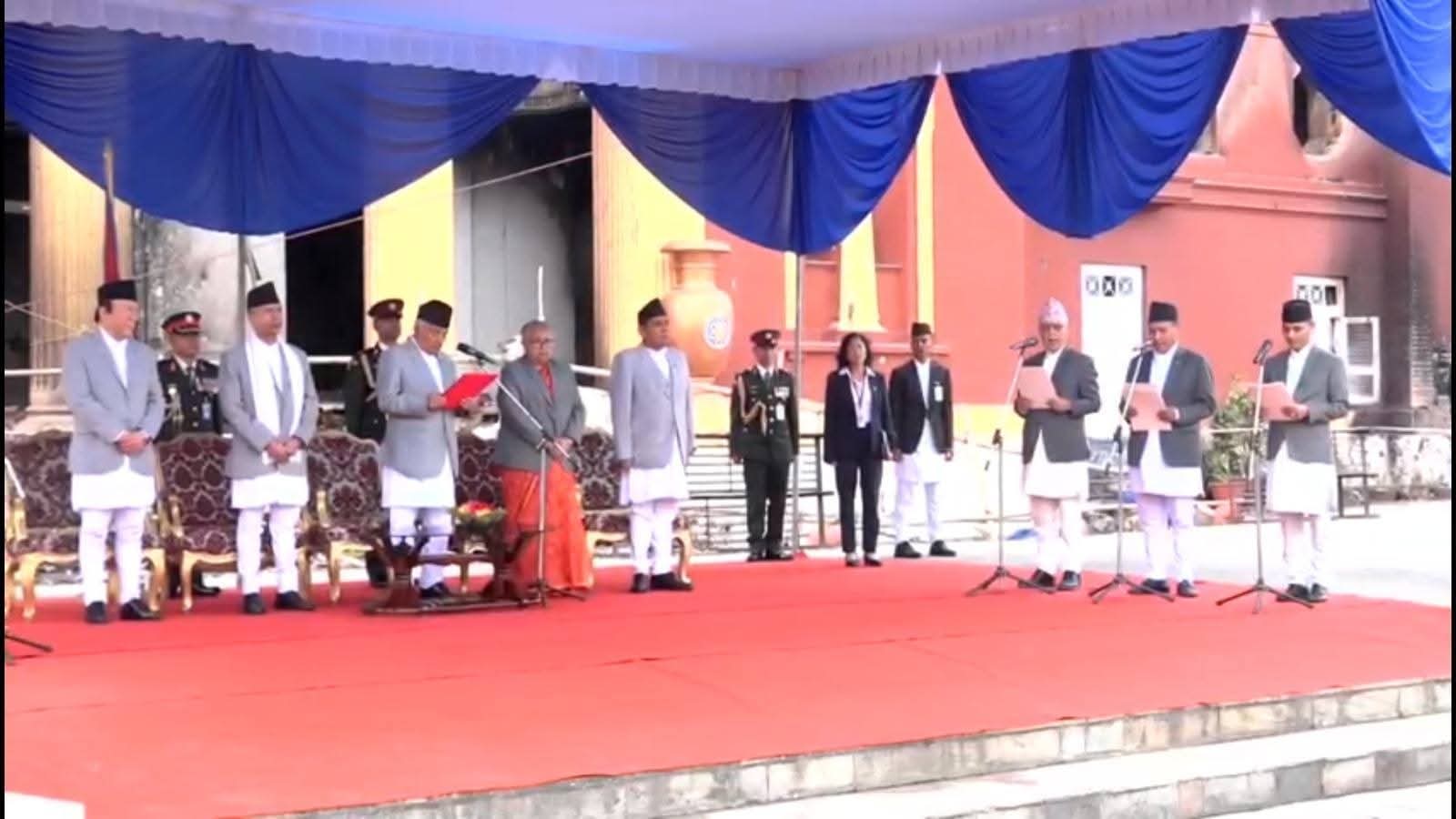 राष्ट्रपति कार्यालयको खण्डहर भवन बाहिर सोमबार नवनियुक्त तीन मन्त्रीहरूले शपथ लिएका छन् । प्रधानमन्त्री सुशीला कार्कीको उपस्थितीमा राष्ट्रपति रामचन्द्र पौडेलबाट शपथ लिएका हुन् ।