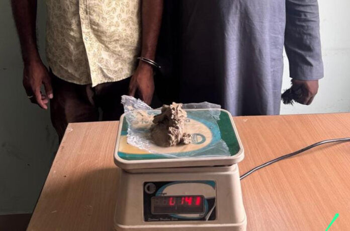 भारतबाट १४१ ग्राम लागुऔषध ब्राउनसुगर लिएर विराटनगर आएका दुई जना पक्राउ परेका छन् । लागुऔषध नियन्त्रण ब्युरो विराटनगरको टोलीले बिहीबार विराटनगर महानगरपालिका- १५ रानीको जानकी मन्दिर अगाडिबाट पक्राउ गरेको हो । यो स्थान भारतीय सीमा क्षेत्र नजिकै पर्छ ।
