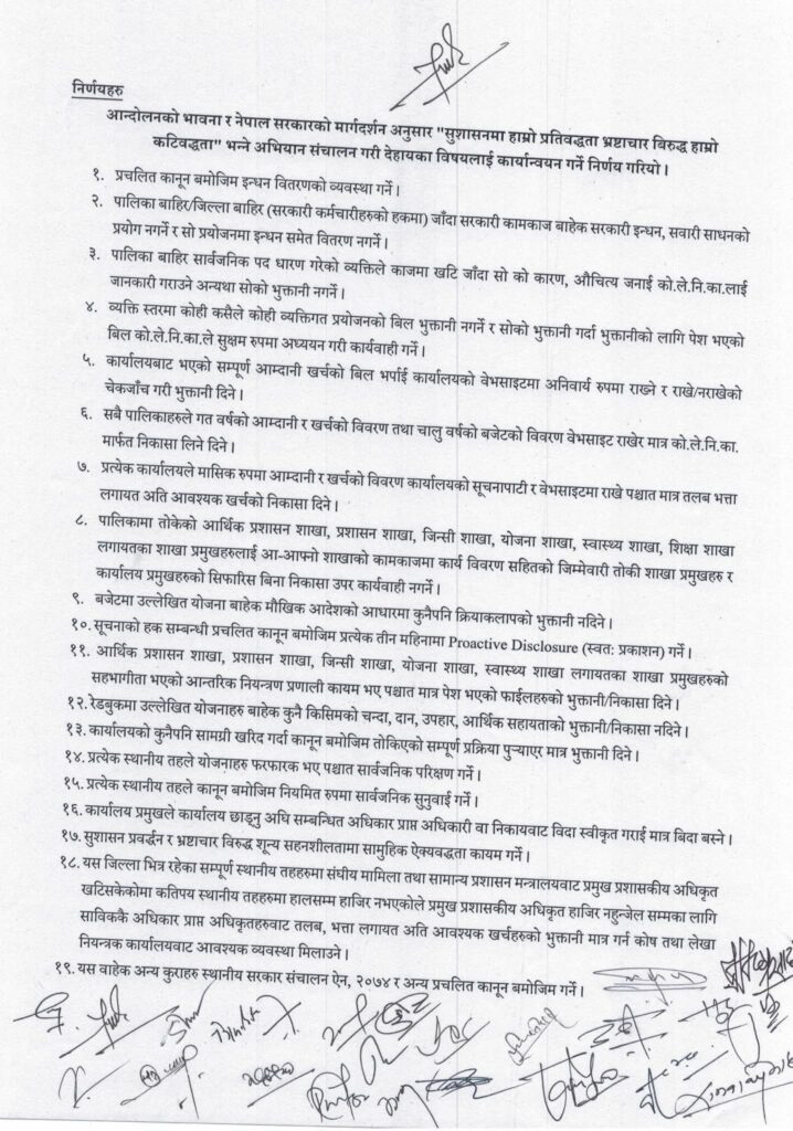 सार्वजनिक सेवामा अनियमितता रोक्ने, अनावश्यक खर्च कटौती गर्ने र आर्थिक शुचिता कायम गर्ने प्रतिबद्धता व्यक्त गरिएको छ ।